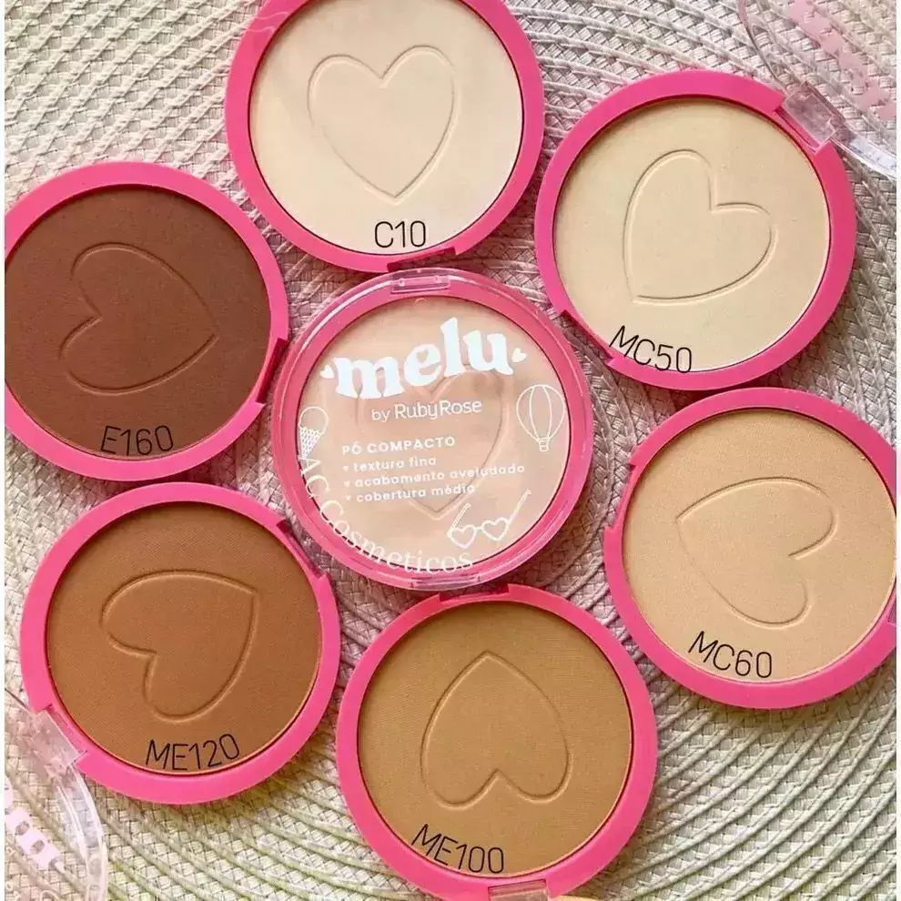 O Pó Compacto Melu conta com uma paleta diversa e completa, com 6 tons que servem para todos os tipos e tons de pele.